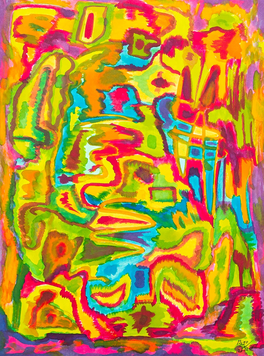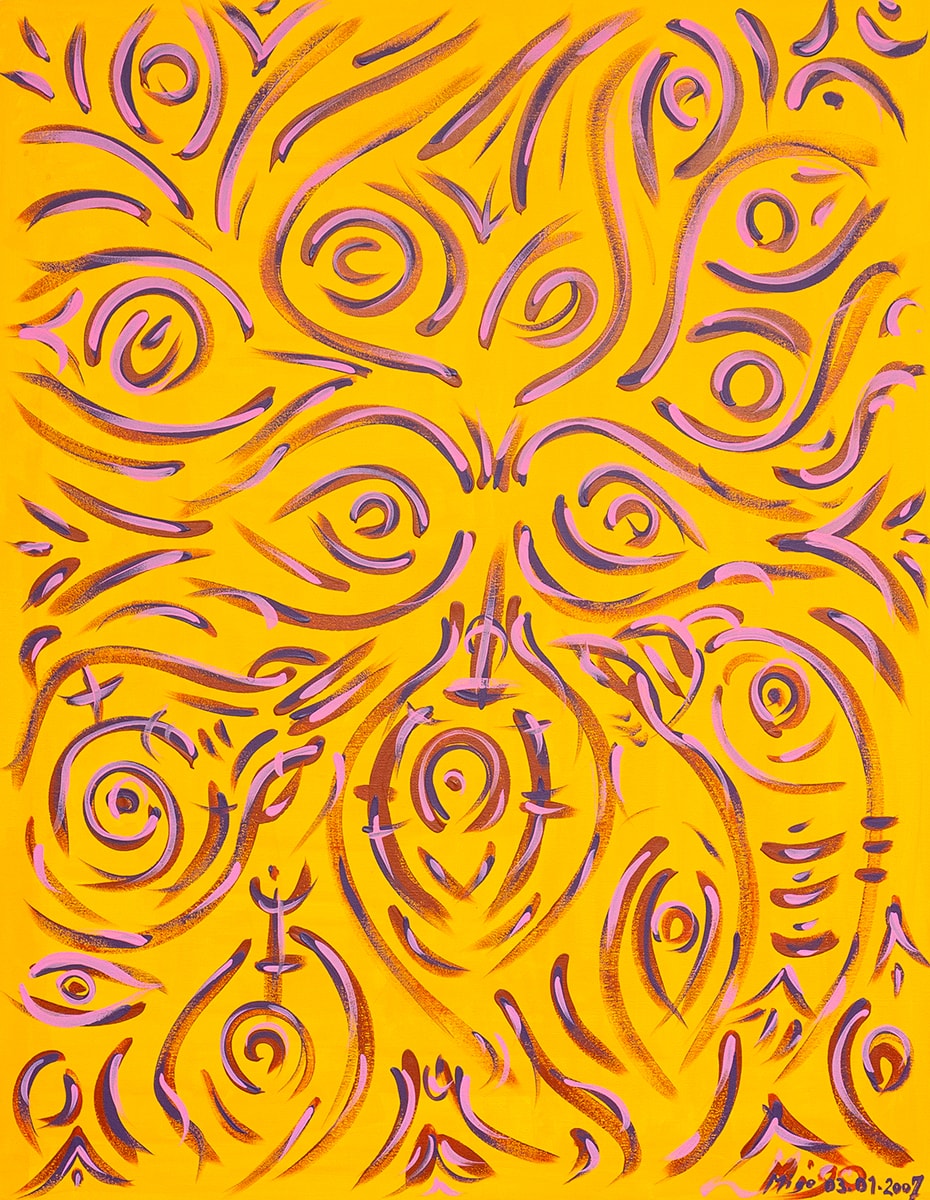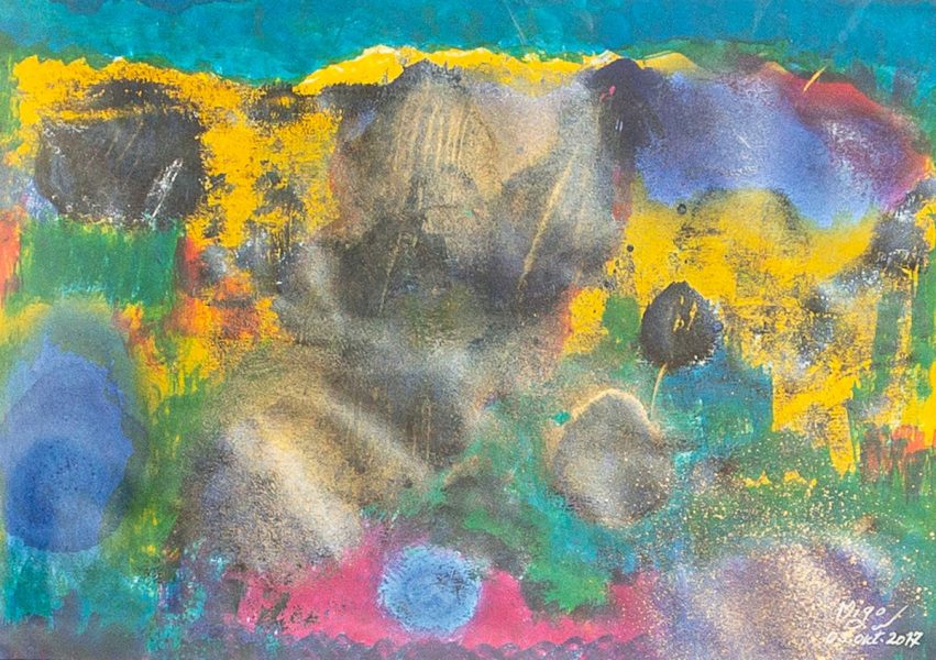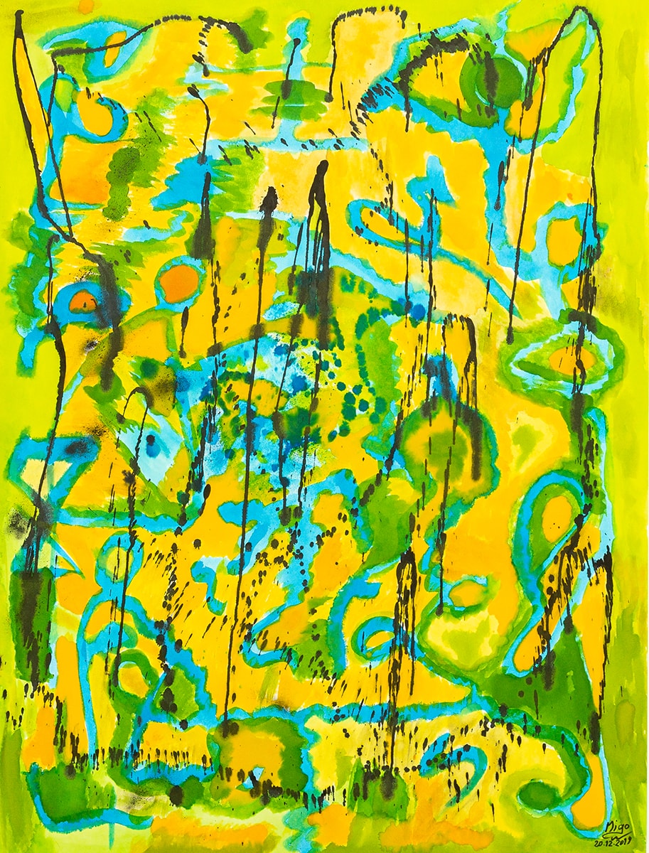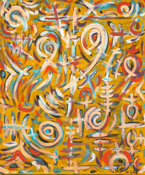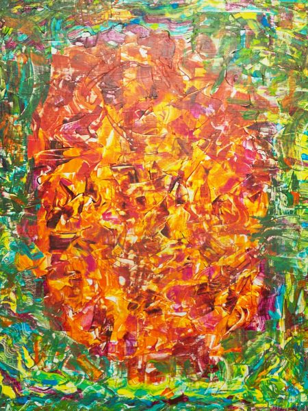Es gibt keine bestimmte Zeit, zu der ich male. Kommt der Moment des inspirativen Impulses, kommen die Leinwand, die Farbpalette und das Werkzeug dazu.