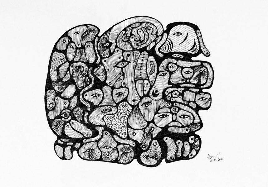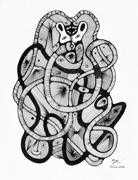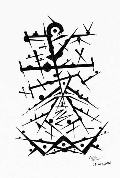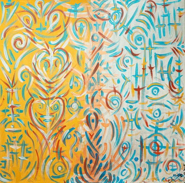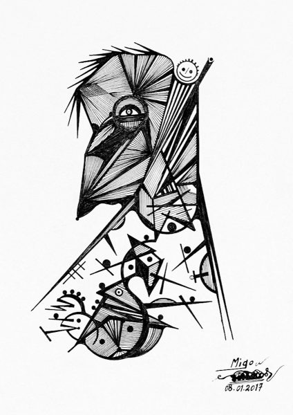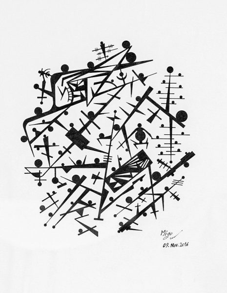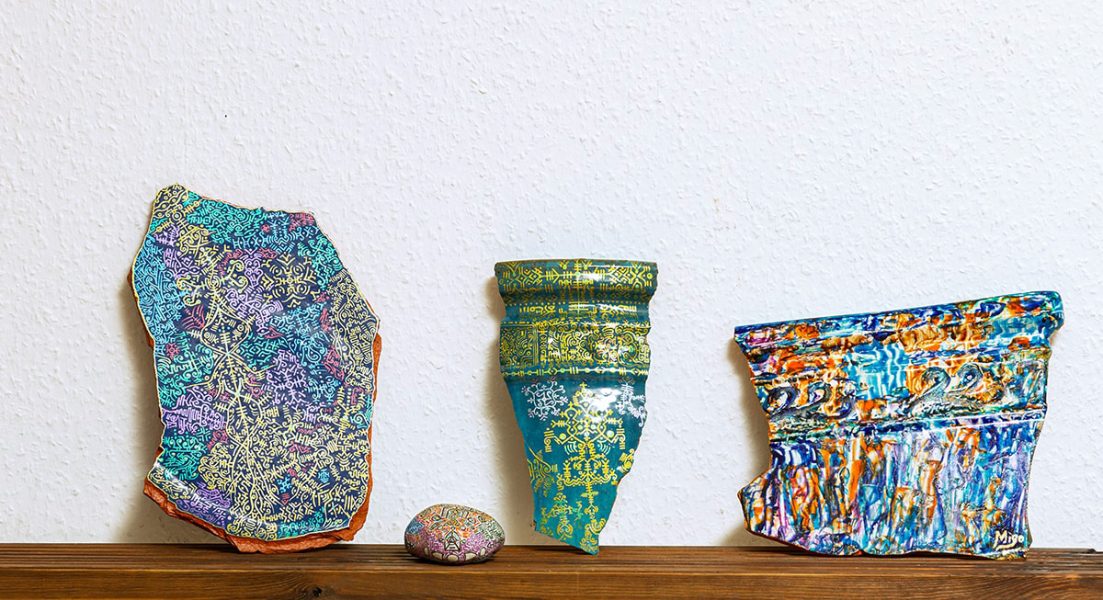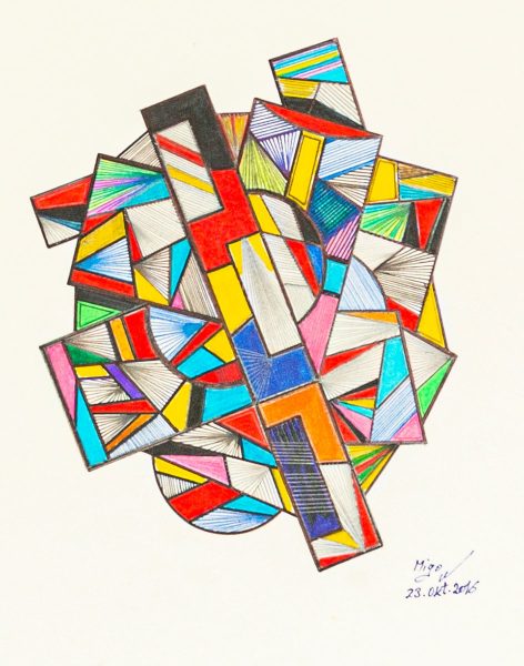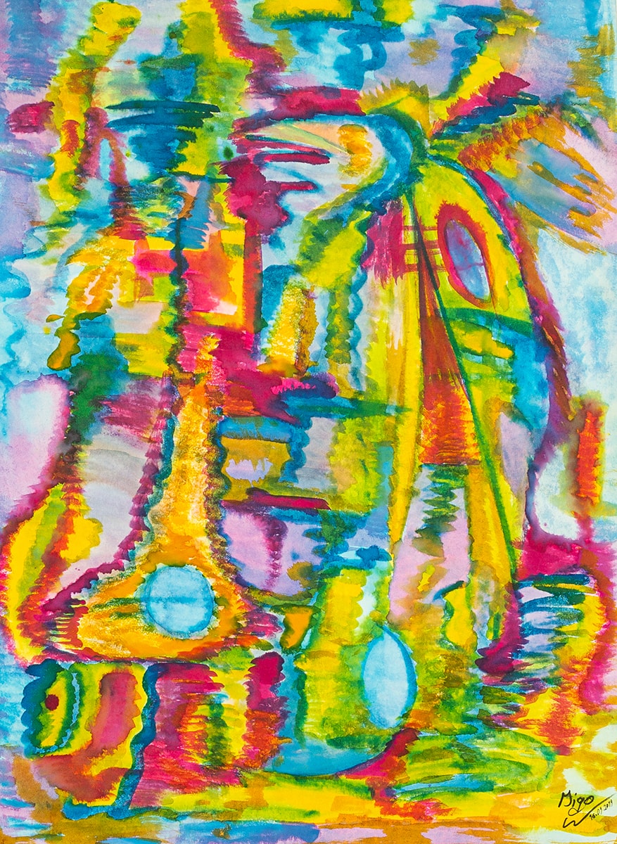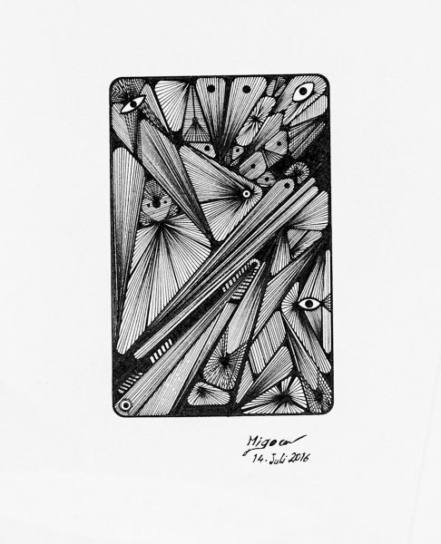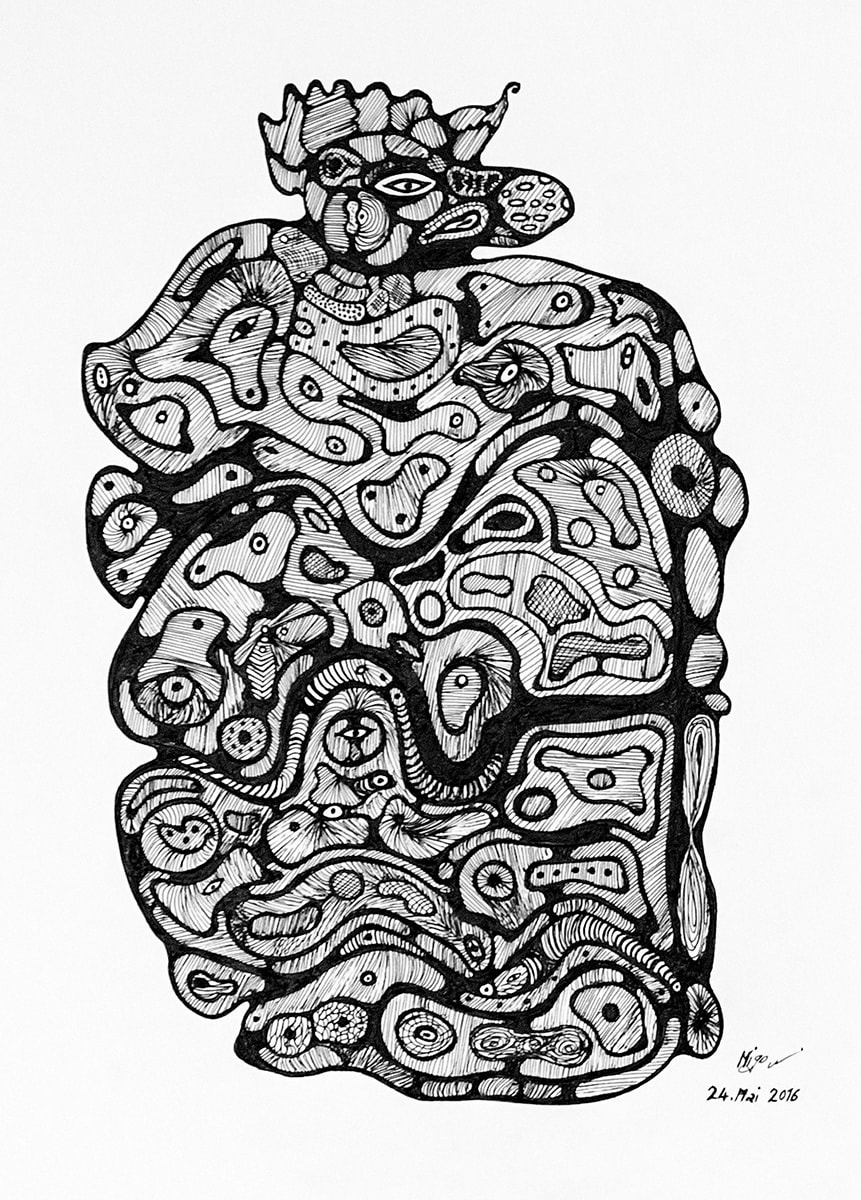 Es gibt keine bestimmte Zeit, zu der ich male. Kommt der Moment des inspirativen Impulses, kommen die Leinwand, die Farbpalette und das Werkzeug dazu.