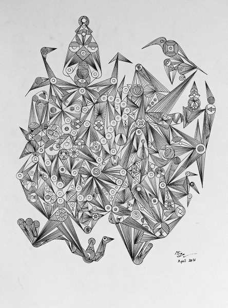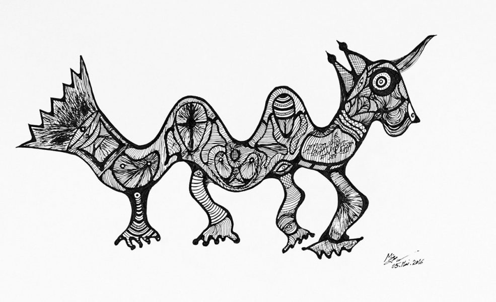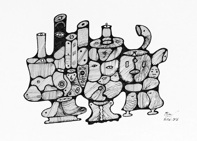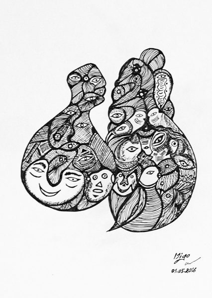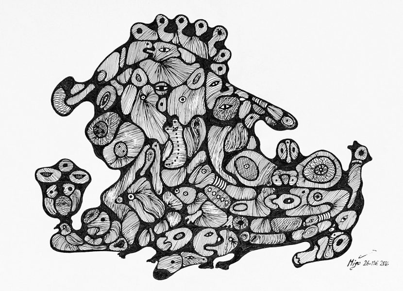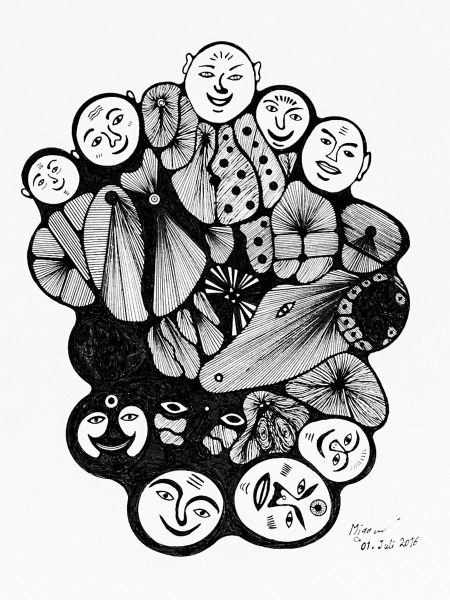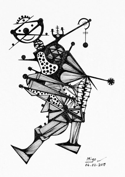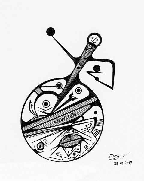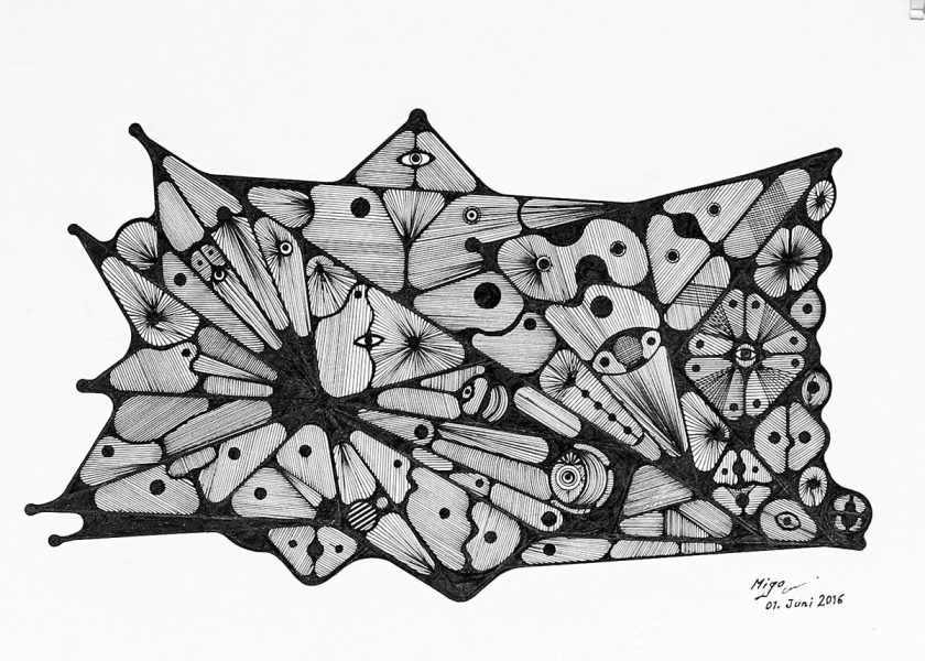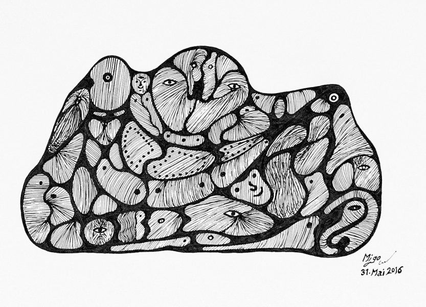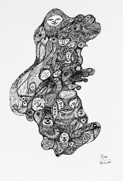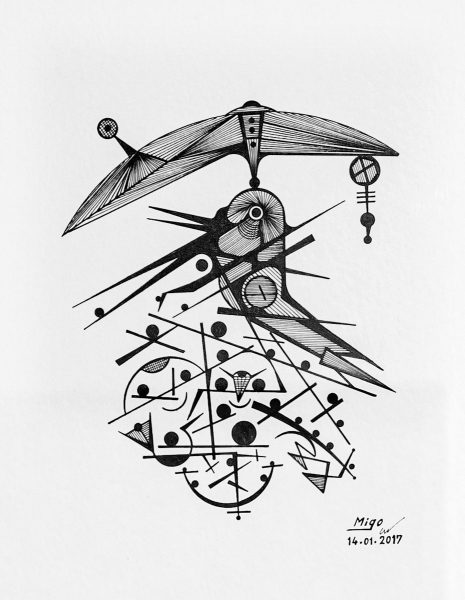 Es gibt keine bestimmte Zeit, zu der ich male. Kommt der Moment des inspirativen Impulses, kommen die Leinwand, die Farbpalette und das Werkzeug dazu.